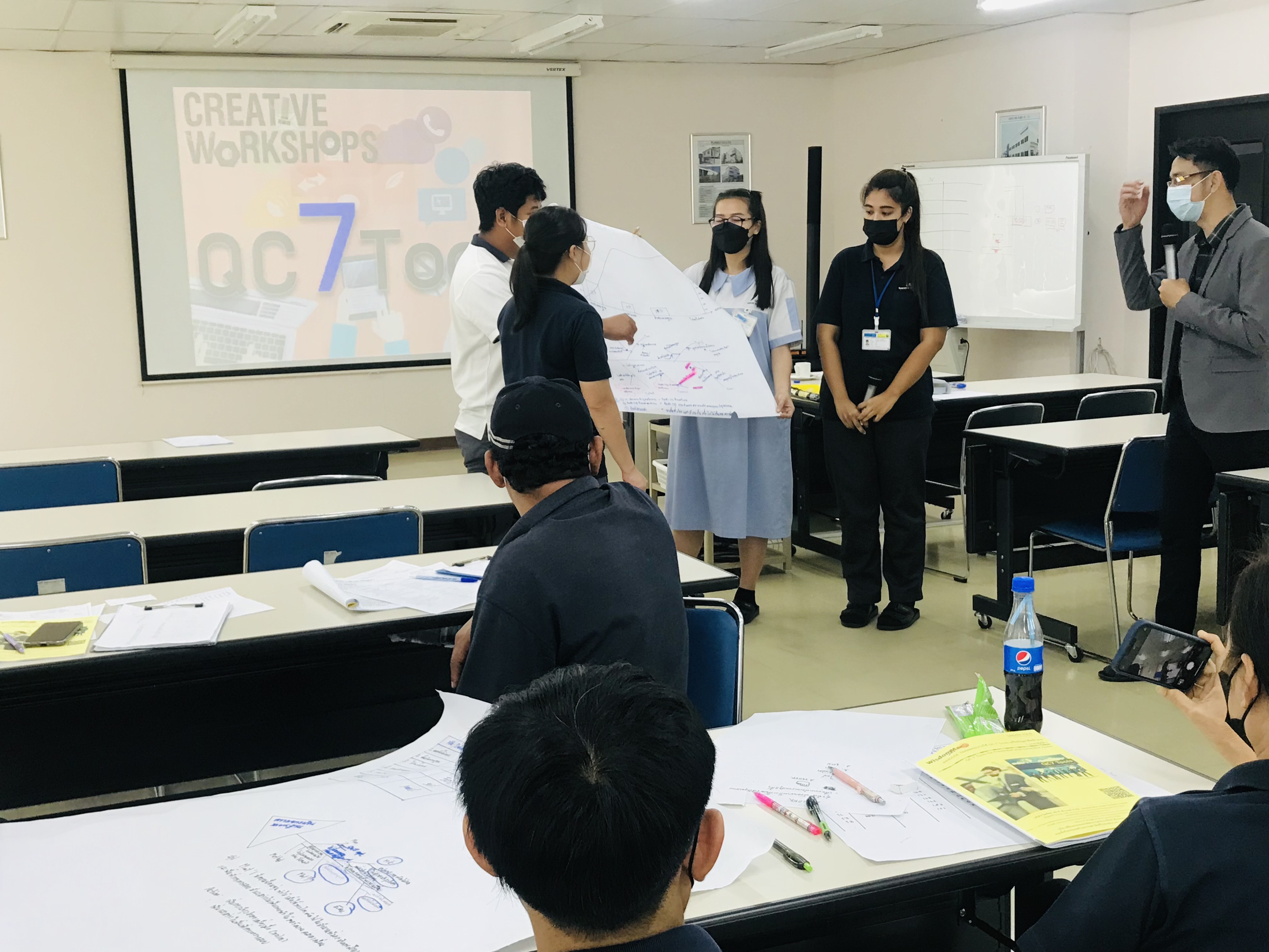 Workshop2ระดมสมอง Brainstorming QC 7 Tools (ให้ผู้เข้าอบรมผลิตสินค้าตัวอย่าง เพื่อช่วยกันวิเคราะห์ปัญหา) ธรรมชาติของกระบวนการผลิตและหลักการในการแก้ไขปัญหาคุณภาพ