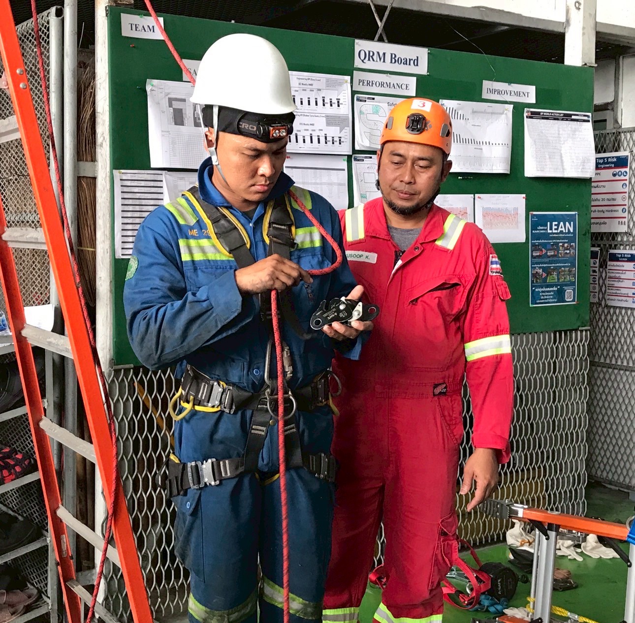 - ฝึกทักษะยืนทำงานบนที่สูงแบบปล่อย 2 มือ