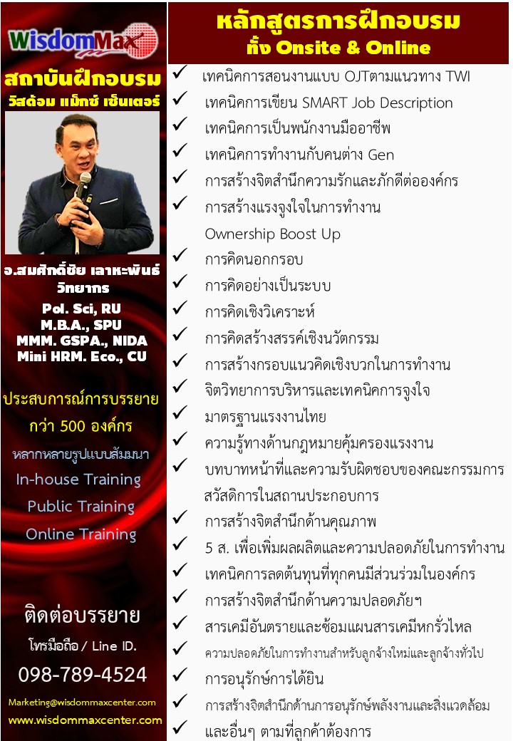สามารถติดต่อขอใบเสนอราคาในหลักสูตรที่สนใจที่หมายเลย 098-789-4524